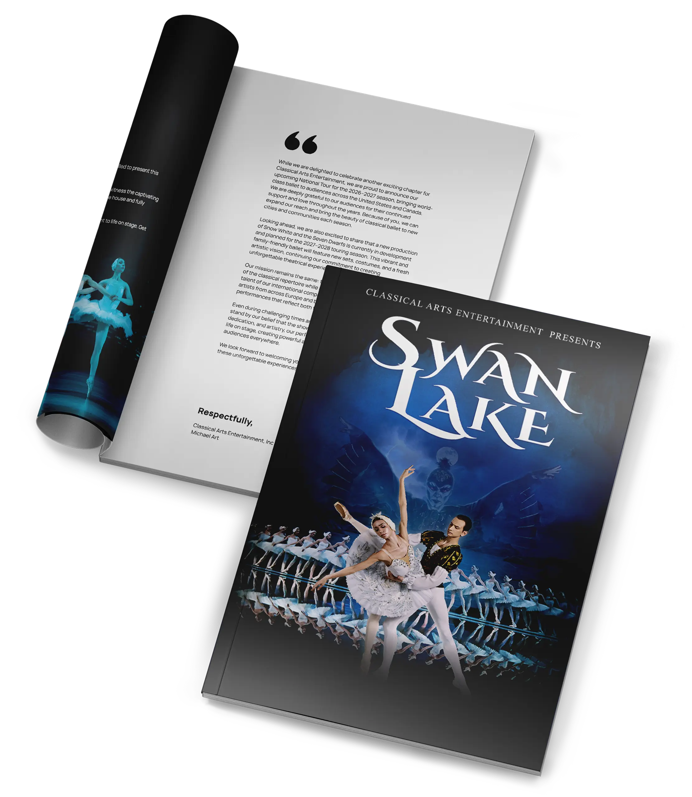 Photos may be taken in the lobby or during the curtain call. We encourage sharing with #ClassicalArtsEntertainment. During the performance: – Photography, videography, and the use of flash are strictly prohibited. – Flash can pose a serious safety risk to performers. – Please silence all devices before entering the auditorium.